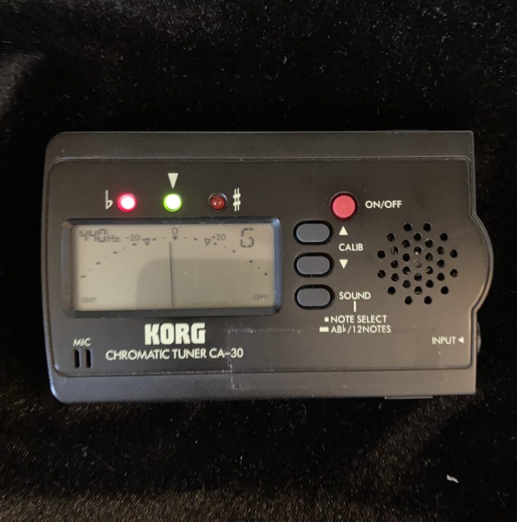 In addition to my tuning fork, I also carry a digital tuner, the Korg CA-50. Mine is many years old and I got it in black. It now comes in a standard white color, but still the same great tuner. I recommend them to my students, and I think it is the BEST tuner out there. While I do not have the metronome version, some of my students have gotten it and it works great. I don’t currently carry the pick-up contact mic add-on, but I have in the past and can recommend it.